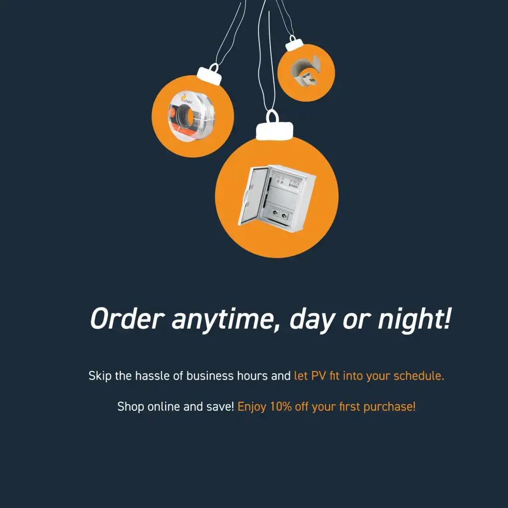 Say goodbye to the hassle of business hours and let PV Connections fit seamlessly into your busy holiday schedule. Whether it’s day or night, you can place your order at your convenience, and we’ll process it as quickly as possible to keep your projects running smoothly.